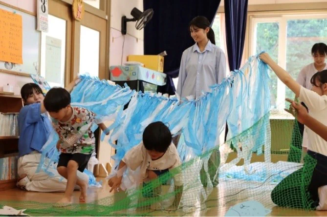 私たち澤田ゼミ3年生10名は、9月に北海道平取町にあるバチラー保育園と二風谷保育園を訪問し、日高管内に特産が多いとされる魚を題材とした運動遊びを行いました。