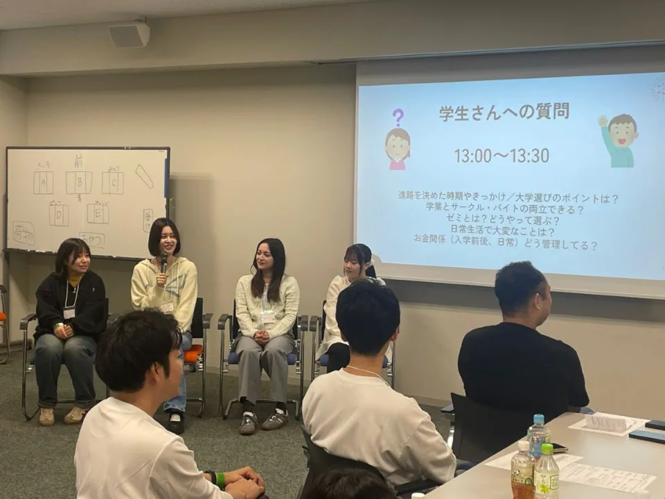 2022年から毎年スポーツの日に実施しています。スポーツの日は祝日で中学、高校はお休みですが、大学は授業があるので、中高生に大学に来てもらい、授業を見学してもらったり、学食で食事をしたり、学生から学生生活の話をしたり、奨学金の説明をしたりしています。今年は8名の中高生が来てくれました。