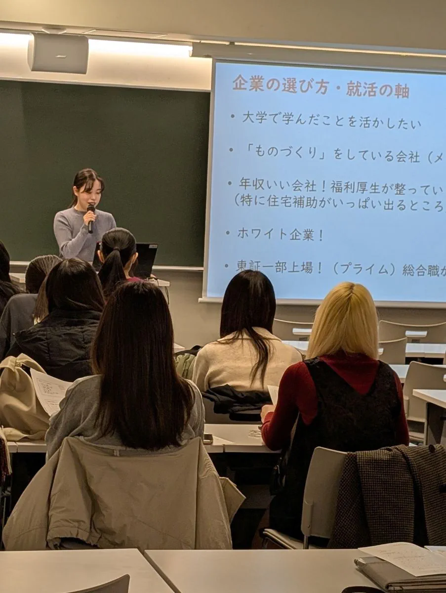今年は一般企業、中高(家庭科)教諭、幼稚園教諭、東京都福祉職、公立保育士、現職の公立の保育士(卒業生)、大学院進学、などとても参考になる進路の経験談をきくことができました!